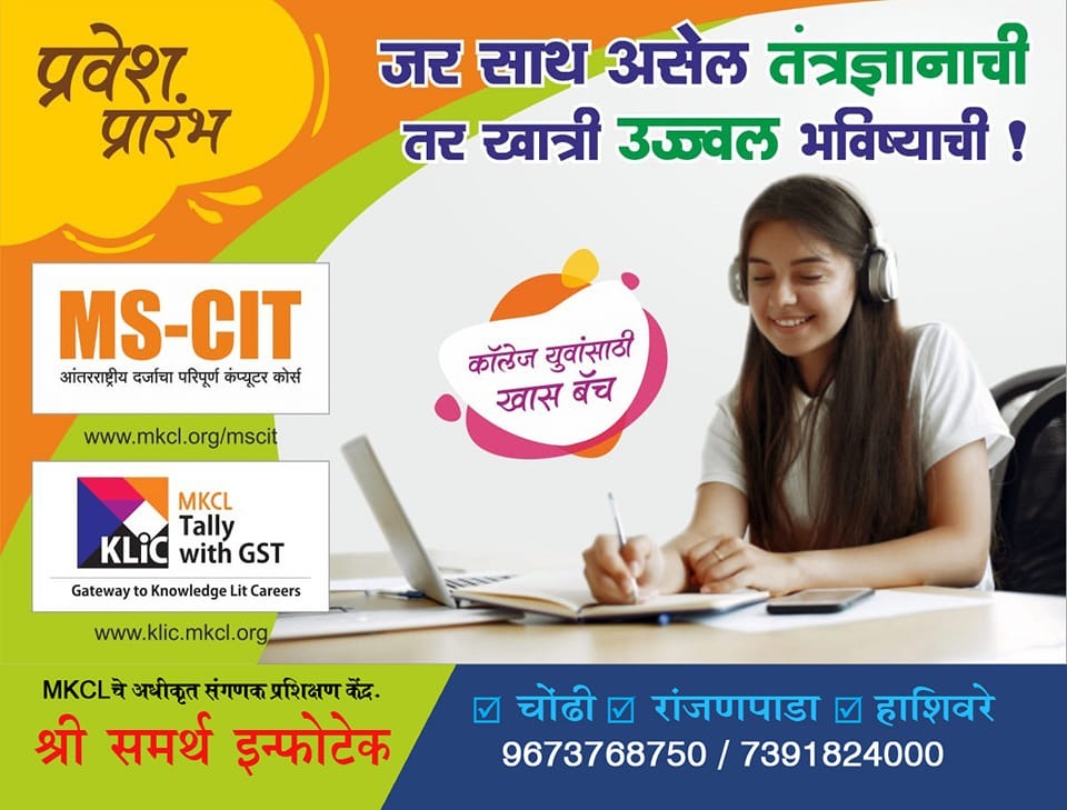 श्री समर्थ इन्फोटेक ही एक नामांकित संगणक प्रशिक्षण संस्था आहे, जी आयटी, अकाउंटिंग आणि डिजिटल कौशल्यांचे प्रशिक्षण देते. आम्ही १९९९ पासून हजारो विद्यार्थ्यांना तंत्रज्ञान शिक्षण देऊन त्यांच्या करिअरमध्ये यश मिळवून दिले आहे.