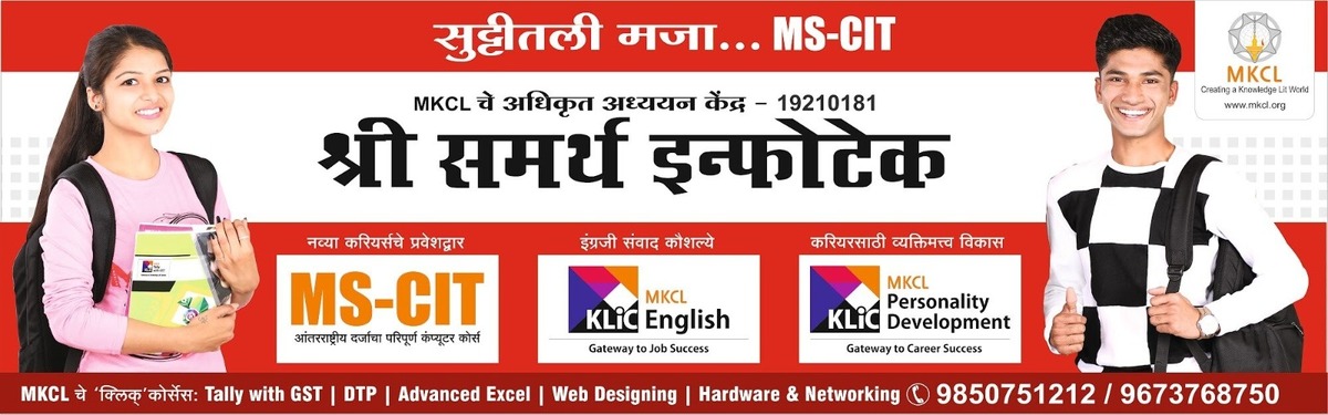 श्री समर्थ इन्फोटेक ही एक अत्याधुनिक संगणक प्रशिक्षण संस्था आहे, जी विद्यार्थ्यांना तंत्रज्ञानातील नवीनतम कौशल्ये आत्मसात करण्यासाठी मदत करते. आमचा उद्देश आहे की, प्रत्येक विद्यार्थी डिजिटल युगासाठी सक्षम आणि उद्योग-तयार व्हावा. आम्ही नवोदित आणि अनुभवी दोन्ही विद्यार्थ्यांसाठी संगणक प्रशिक्षण देत आहोत, जे त्यांना करिअरमध्ये पुढे जाण्यास मदत करते.